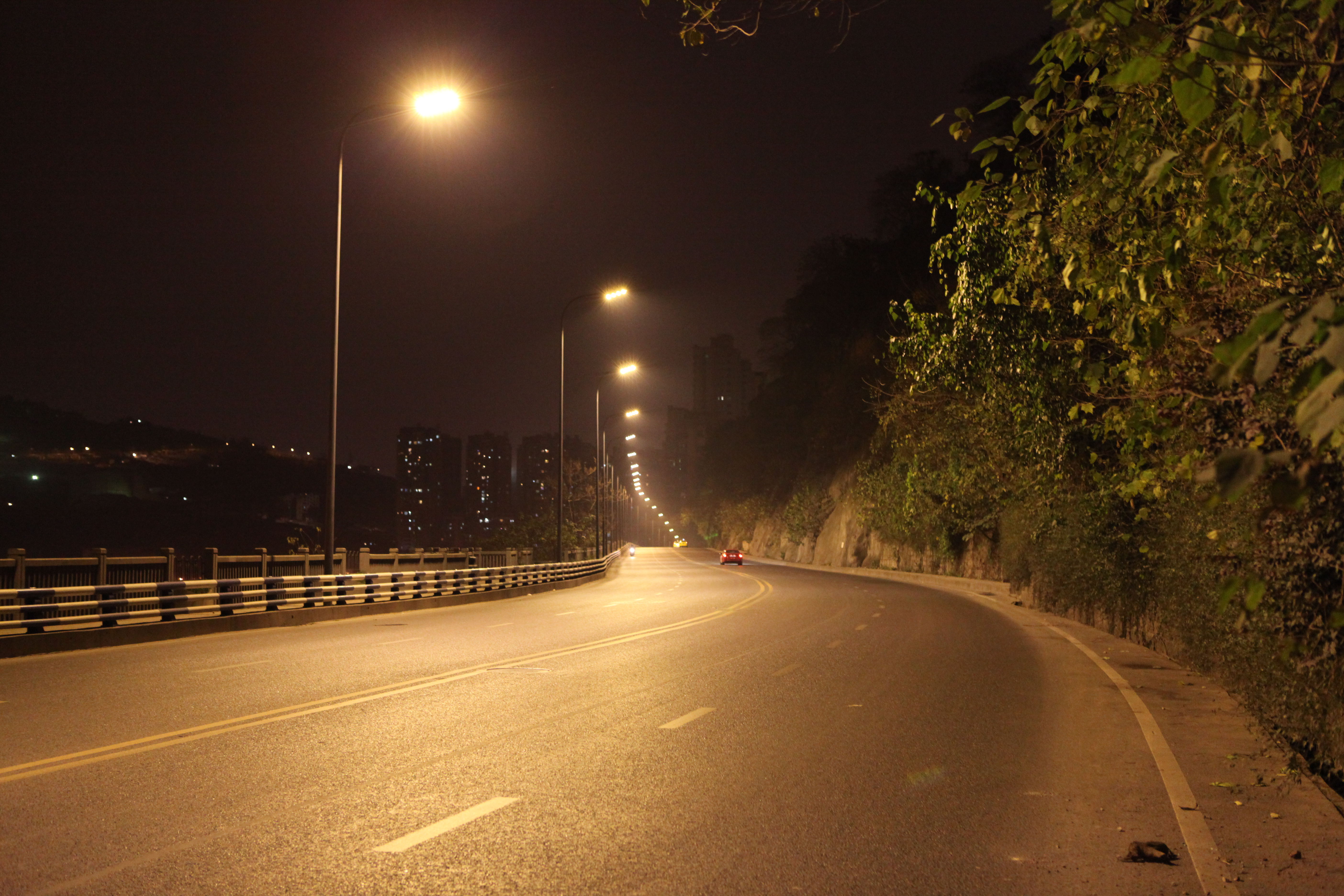 重慶綠色科技開(kāi)發(fā)(集團(tuán))有限公司為重慶市城市照明管理局實(shí)施的“重慶市渝中區(qū)紅巖村滴水巖LED智能路燈綠色照明工程”(單側(cè)布燈),主要具有路面燈光清晰度高(顯指70)、均勻度好、光效高等特點(diǎn),該燈具性能指標(biāo)均領(lǐng)先全國(guó)同類產(chǎn)品,采用我司自主研發(fā)的專利技術(shù)“互聯(lián)網(wǎng)+多色溫LED路燈、隧道燈六遙(多色溫、遙調(diào)、遙測(cè)、遙控、遙視、遙信)控制系統(tǒng)”(專利號(hào):2015204938054)遙控可實(shí)現(xiàn)智能控制。本產(chǎn)品是我司利用多項(xiàng)自主專利技術(shù)(專利號(hào):201320842388、2013200281262015204938054)研發(fā)、制造的LED智能路燈產(chǎn)品,并已獲得重慶市高新技術(shù)產(chǎn)品、重慶市市政行業(yè)新技術(shù)認(rèn)證。實(shí)景照片展示如下(20121229