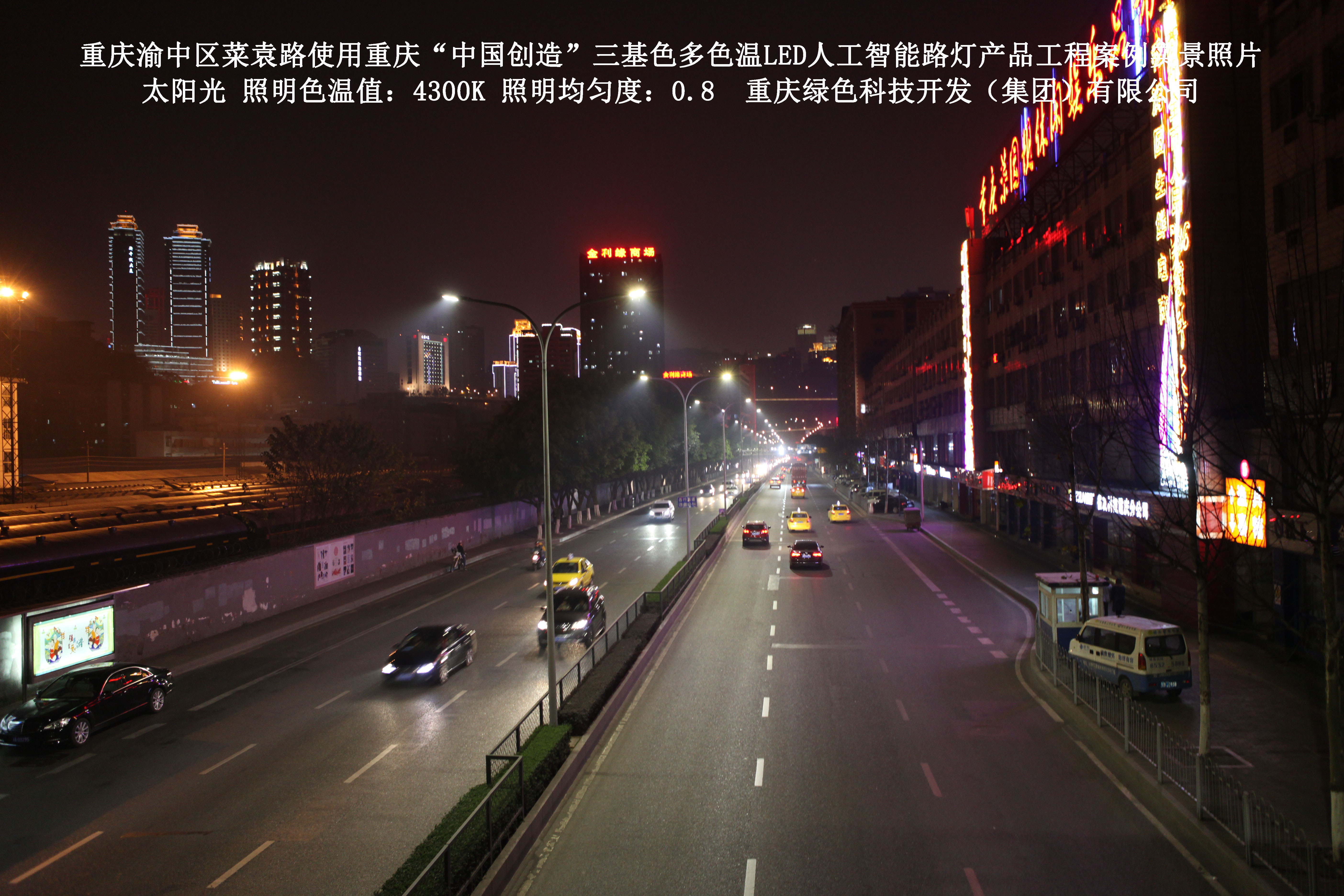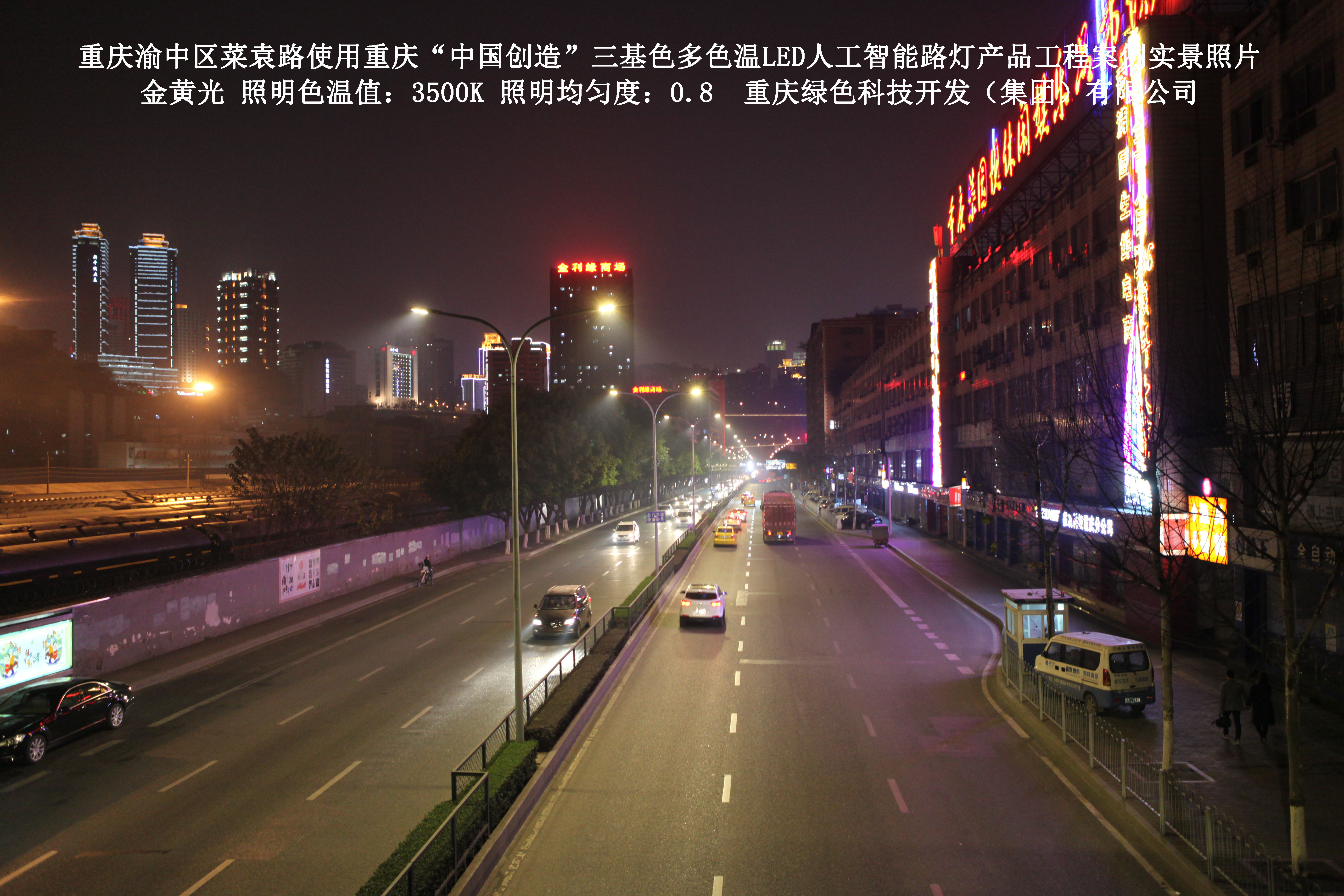 2013年10月,重慶市城市照明管理局使用了我司研發(fā)制造的重慶“中國創(chuàng)造”三基色多色溫LED人工智能路燈,對渝中區(qū)菜袁路實施了綠色照明科技節(jié)能改造工程,該工程已全面竣工。工程實施后,極大地提高了城市照明清晰度、燈光均勻度、舒適度。通過智能終端實現(xiàn)單燈感知、線纜防盜報警,與原高壓鈉燈相比,節(jié)能率60%以上,有效解決了關(guān)閉控制回路或間隔關(guān)燈方式造成的照明暗區(qū),確保行人和車輛通行的安全,實現(xiàn)城市路燈照明系統(tǒng)的智能化管理,推進(jìn)了智慧城市建設(shè)。